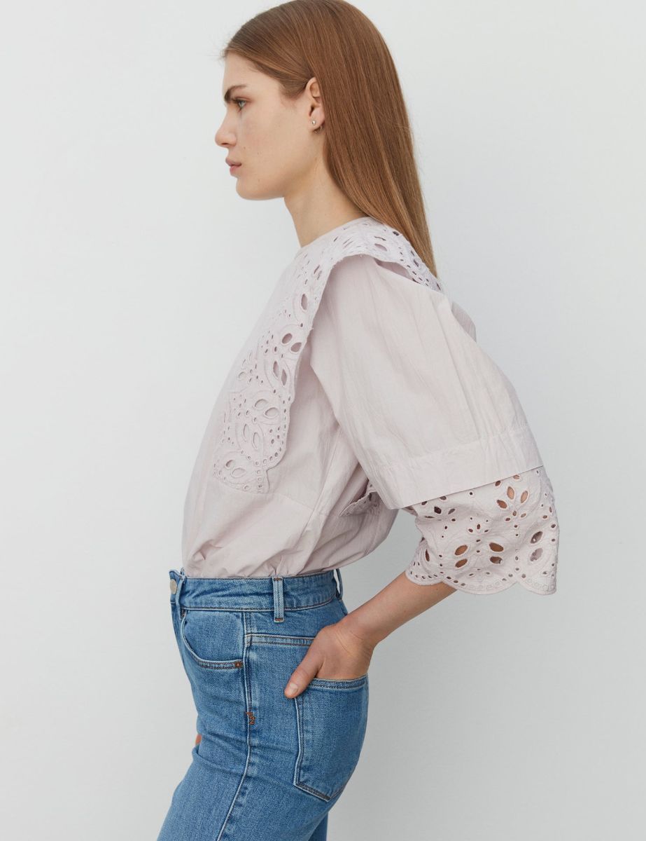 Denne del af firmaets nyeste kollektion er krydret med broderi anglaise, som får modspil af et par af sommerens smarte jeans.
