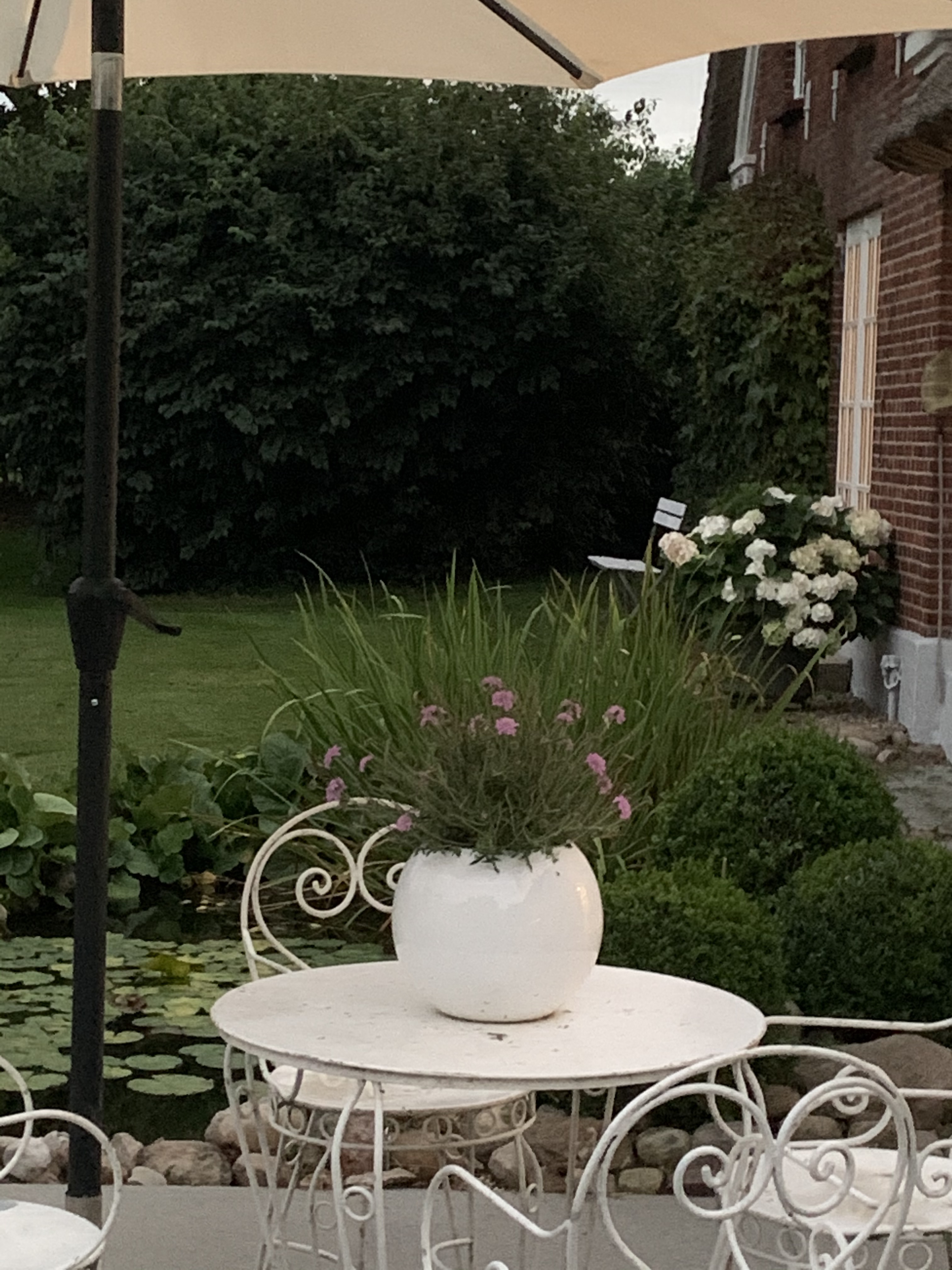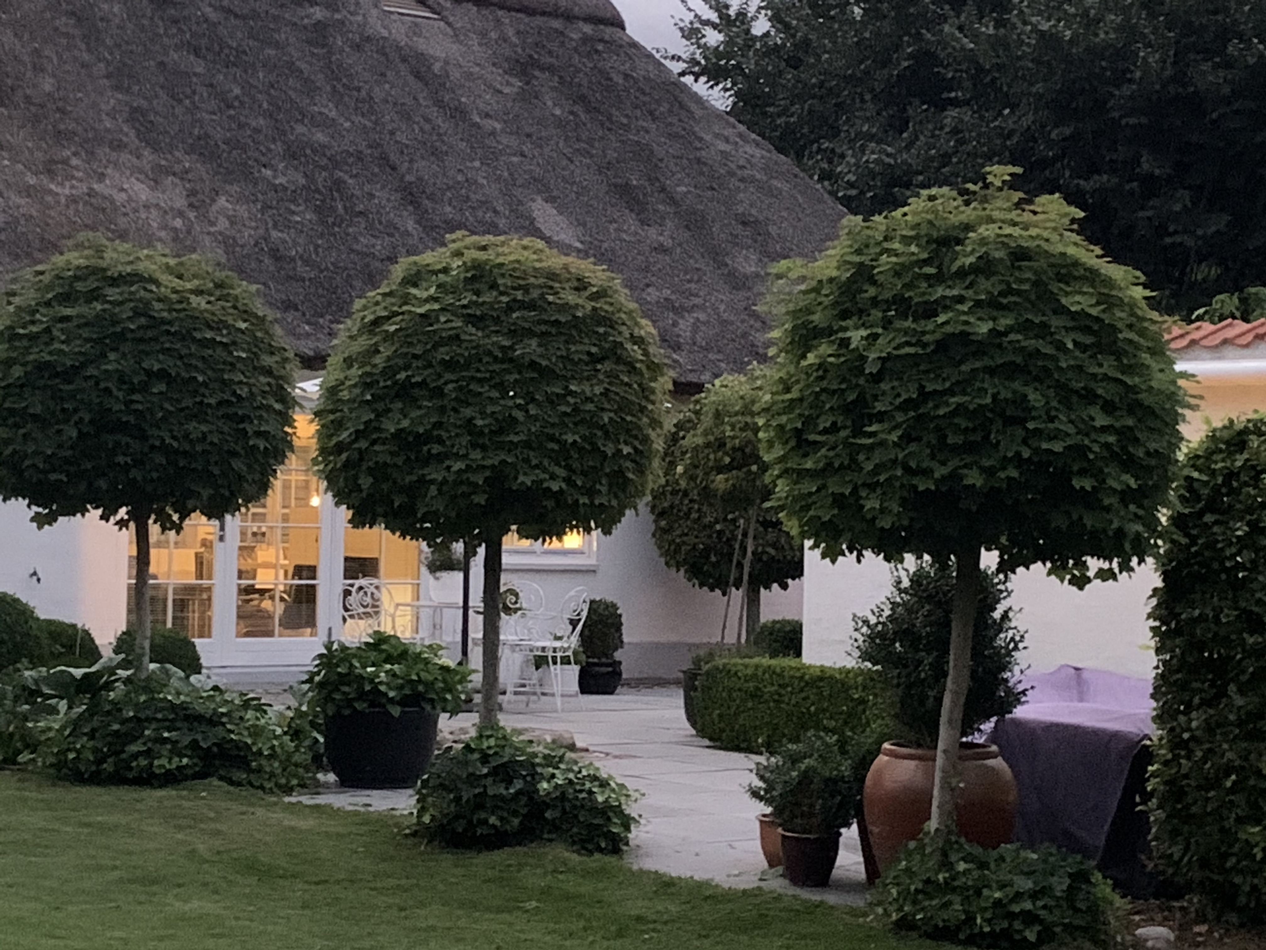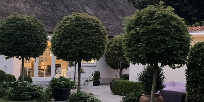 De formklippede træer og blåregnene er klippet til og vores mange - og der er mange! - hække er klippet flere gange. Nu mangler vi lige finpudsningen inden efteråret.