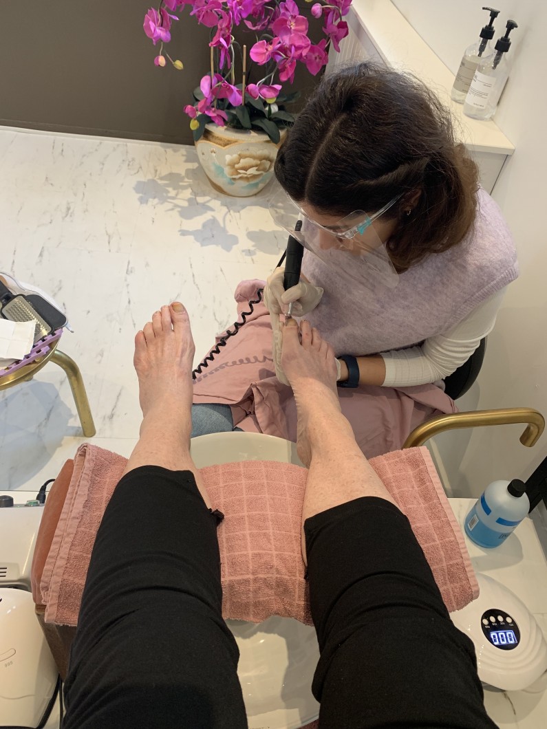 Jeg blev fristet og prøvede en omgang af begge dele. Det var en luksus, hvilket resulterede i smukke negne på både fødder og hænder.