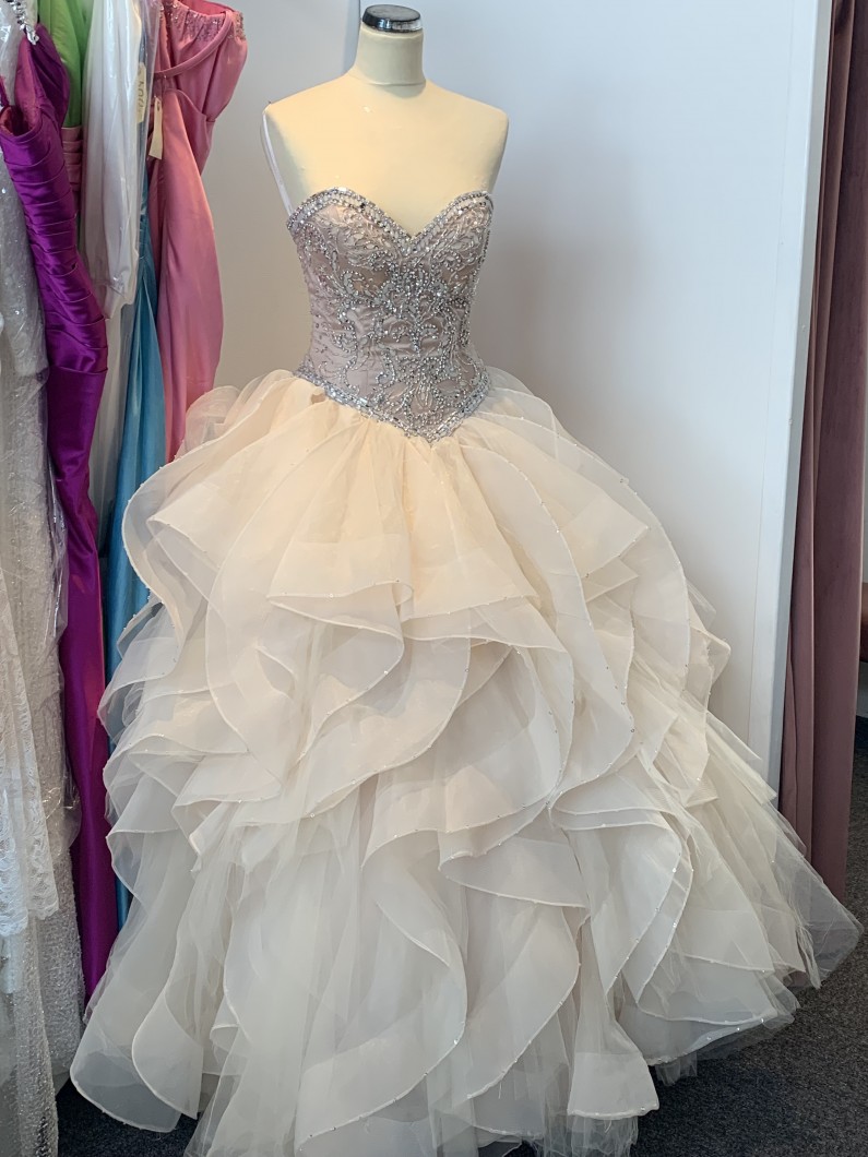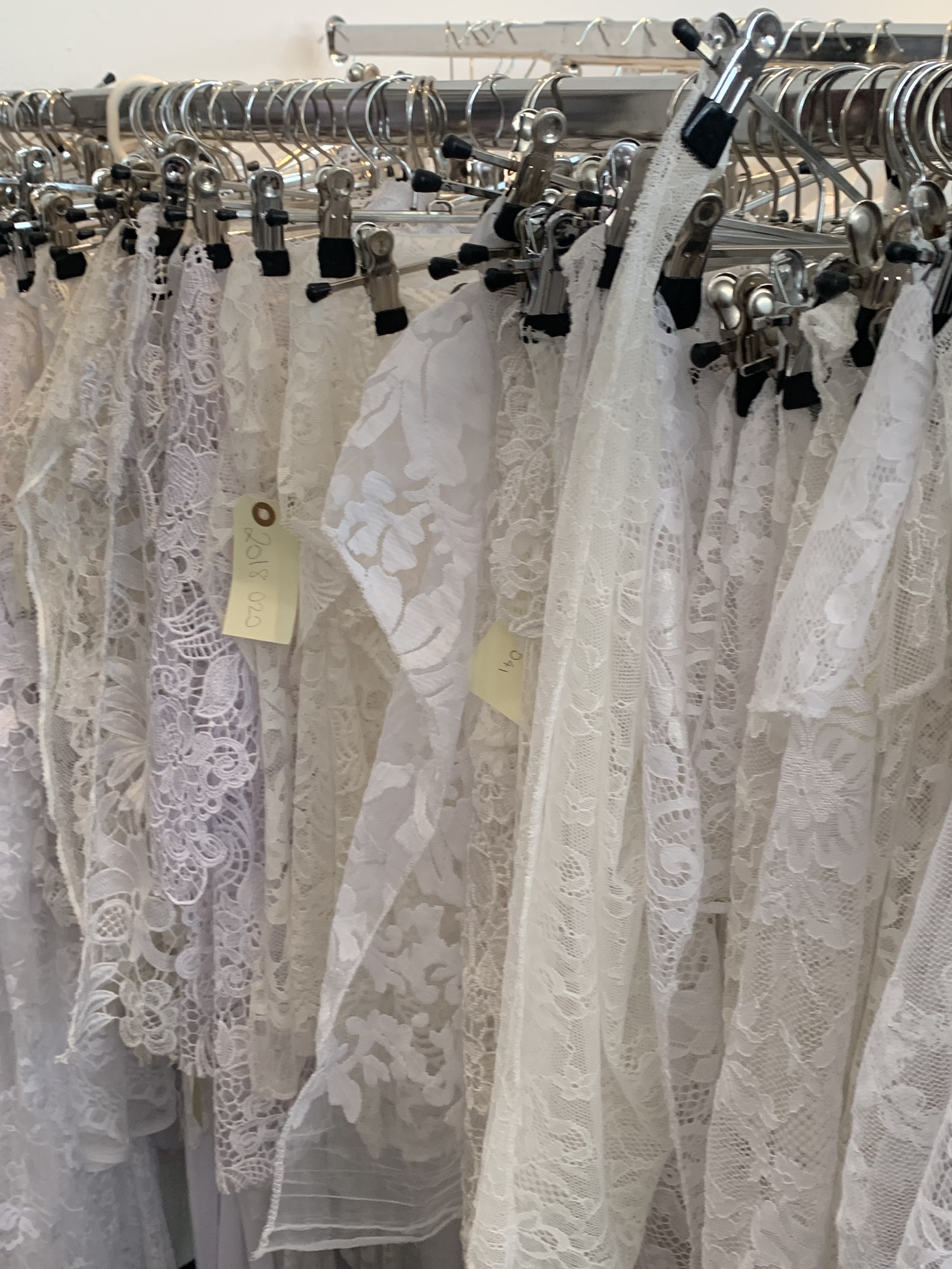 - Nu syr vi masser af fest-, brude- og konfirmationskjoler, og man kan komme herind og vælge det stof, som man gerne vil have syet sin kjole af. Vi har masser af smukke blonder, som mn også frit kan vælge imellem, så man kan få sin helt egen personlige kjole, fortæller Ngan.
