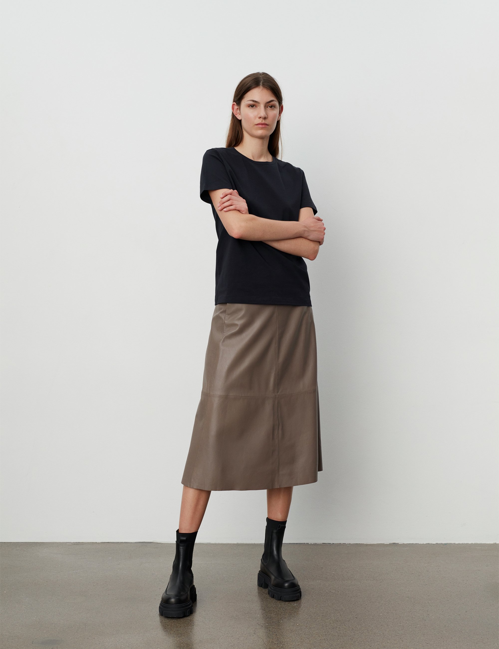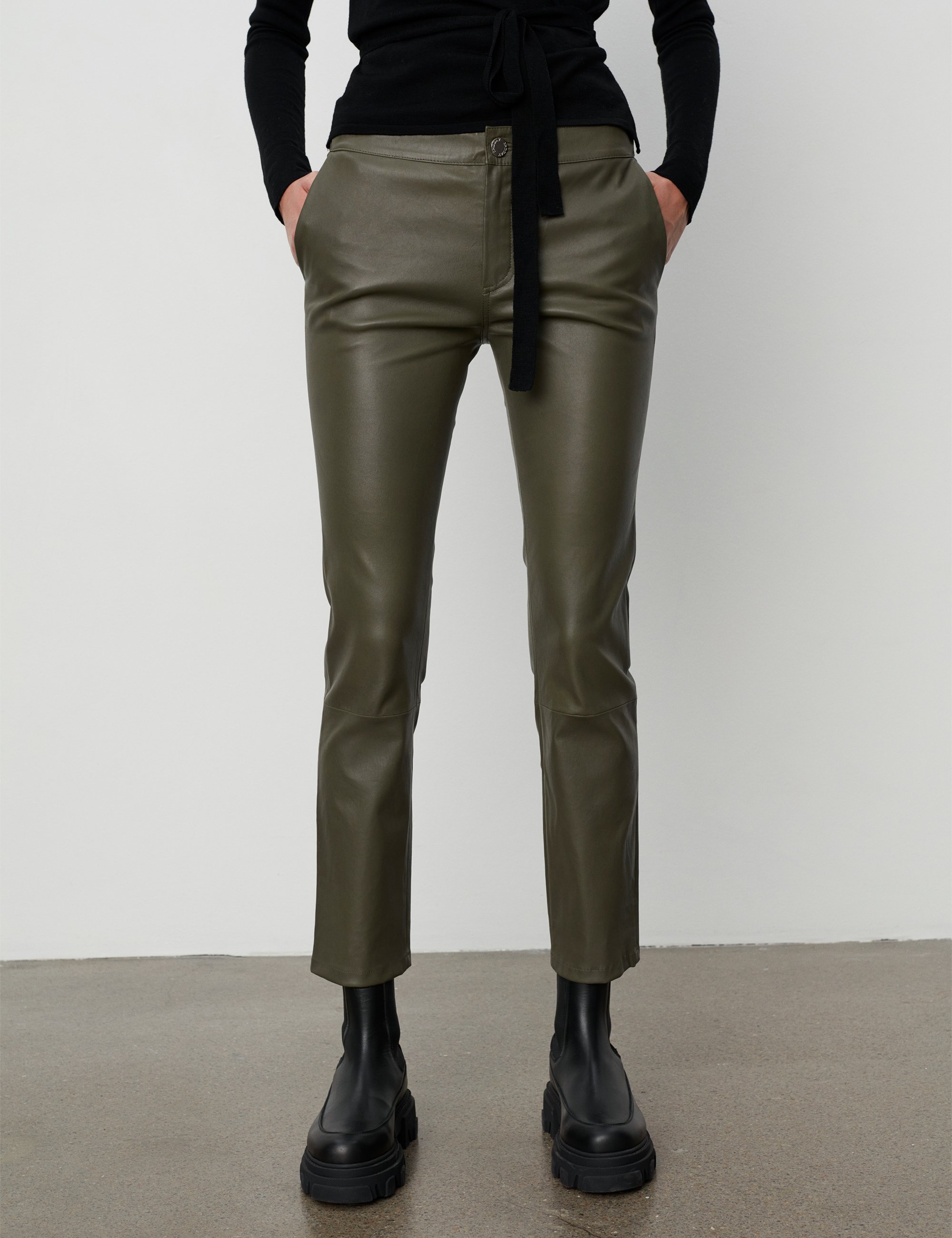 Synes man, at læder virker for "hårdt", blødes de lange jeans f.eks. op med en blød vamset strikbluse eller en feminin flæseskjorte.