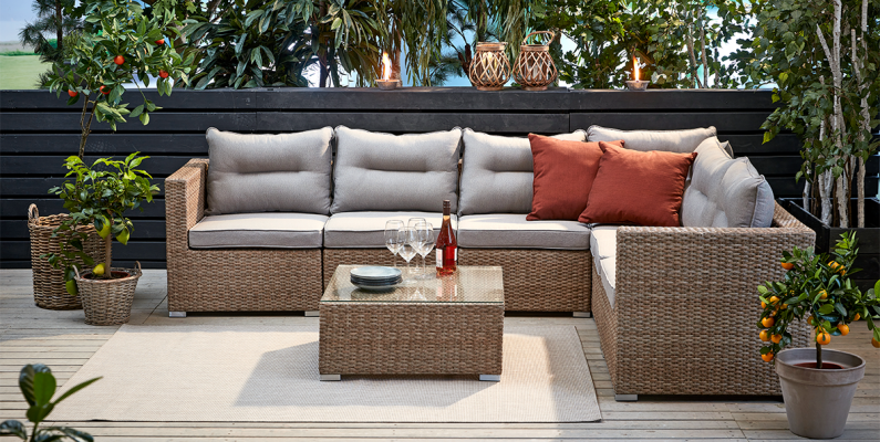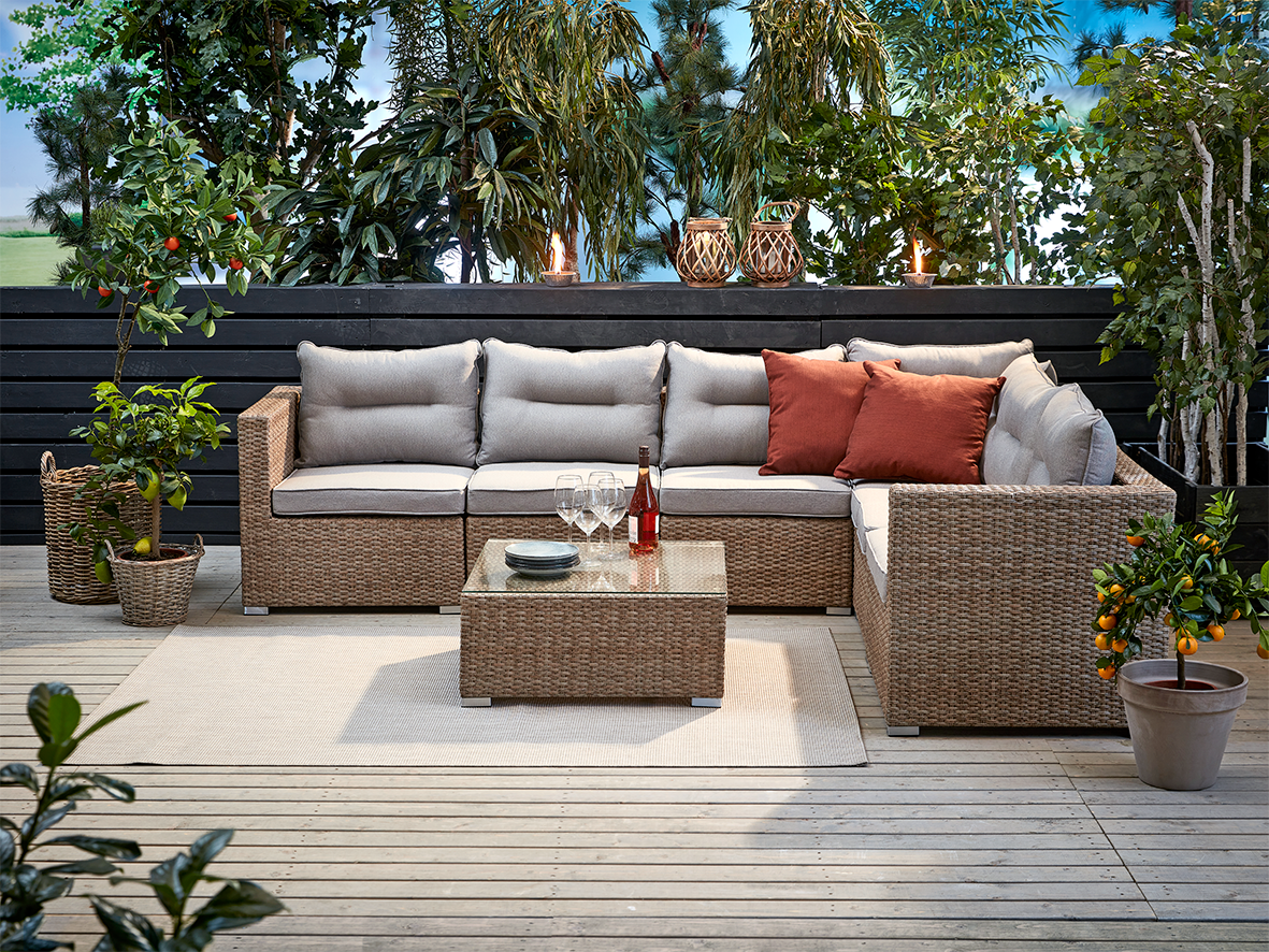 Med Berga loungesæt er mulighederne mange, som gør det let for dig at omdanne en neutral krog i haven til den dejligste oase.