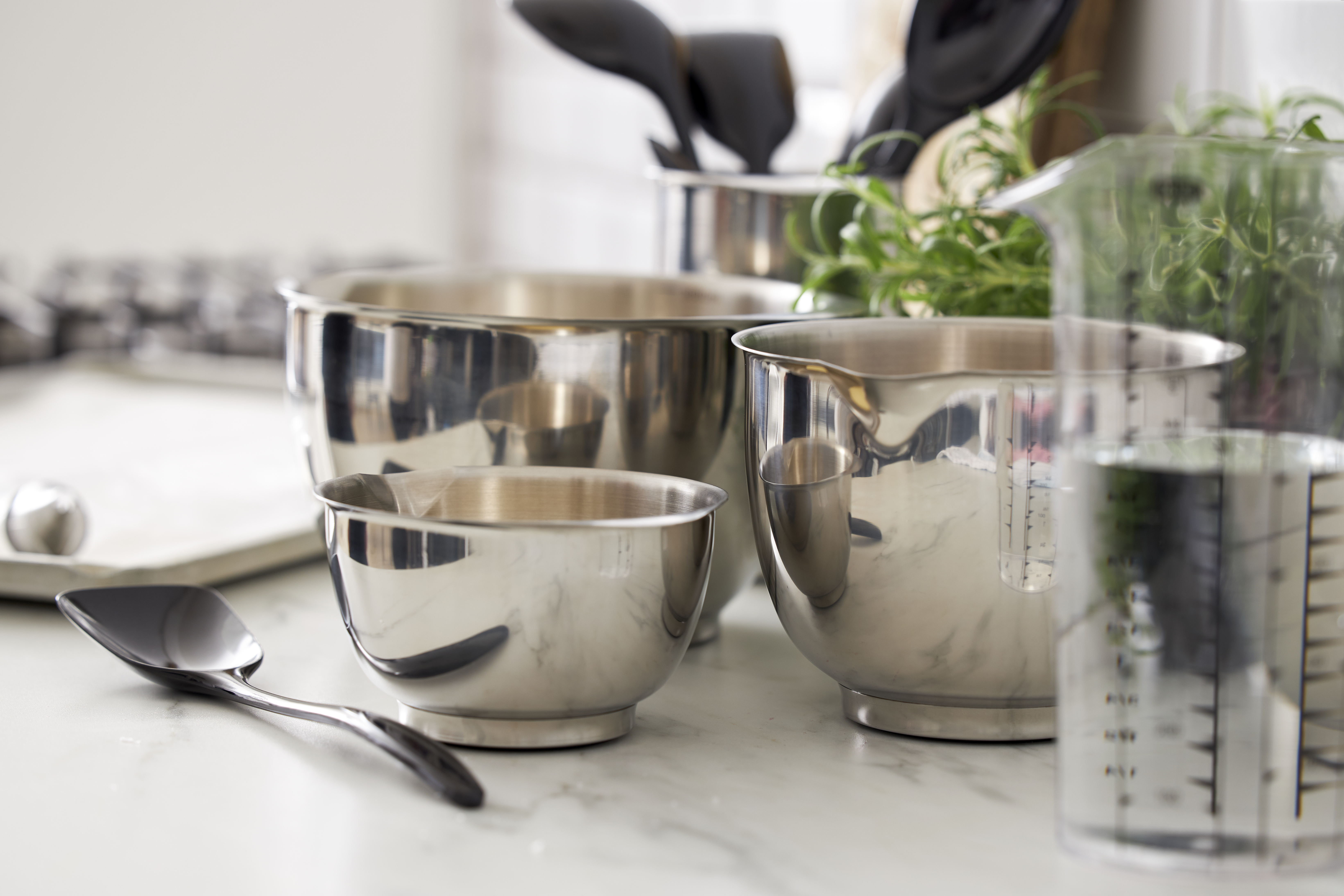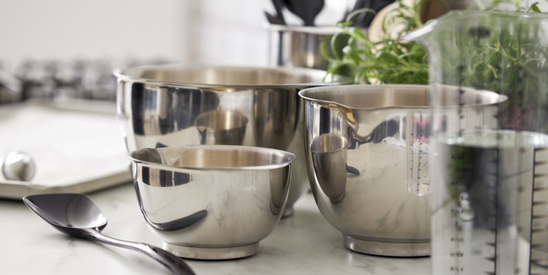 Da det nye sæt af skåle er produceret i 8/18 stål, holder skålene formen ved tilførsel af varme fødevarer, ligesom de er nemme at affedte, hvis man eksempelvis har arbejdet med madolier eller æggehvider.
