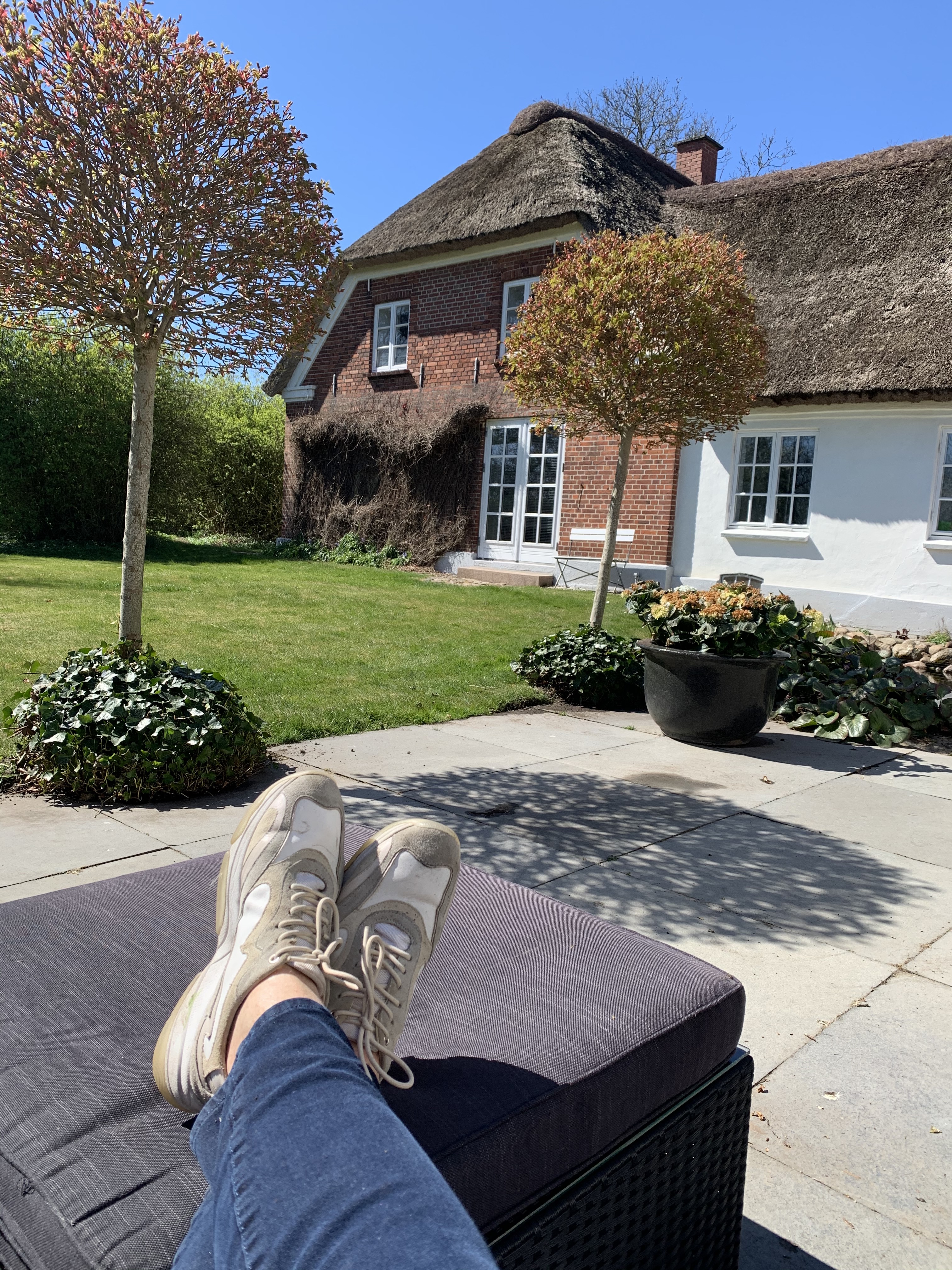 Vi har en mega stor grund. Bestående af - tror jeg - kilometervis af hække, der skal klippes, masser af græsplæner, der skal slås. og en frugthave, der skal trimmes.  Og en terrasse, der skal finpudses for at tage sig smuk ud.