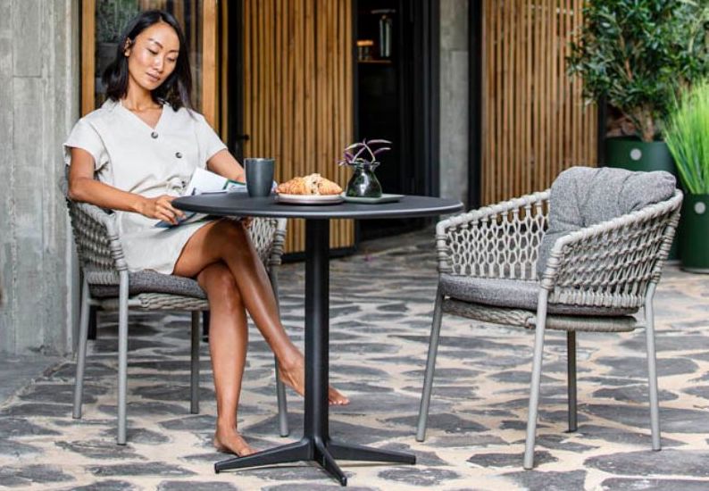 Der en helt særlig ’easy going’ lethed over Cane-lines nyeste, stabelbare stol, der sætter det gode håndværk i fokus på både terrasse og altan. Ryg og armlæn i slidstærkt aluminium er formet som en klassisk stol, der favner kroppen, mens sider og ryg i stormasket, åbent flet løfter udtrykket og gør det overraskende luftigt og raffineret.