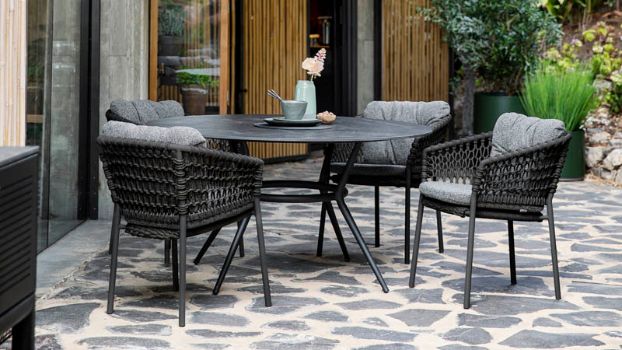 Det lette, fiskenet-lignende flet i Cane-line Soft Rope bliver suppleret af to hynder med et udtryk, der er helt nyt for Cane-line – de er lette og ’fluffy’ som skum på havet og har et komfortniveau, der giver dig lyst til at blive siddende i stolen, længe efter maden er spist og glasset tømt. Vælg mellem enten Cane-line Natté eller Cane-line Wove i flere varme, jordfarver.