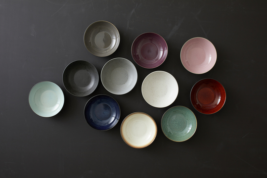 Stentøjet er som altid håndlavet, og med den særlige glaseringsteknik får hver eneste skål sit helt eget udtryk med unikke variationer i glasurens aftegninger og nuancer. Gå efter et enkelt udtryk med de tre matte skåle, eller vælg mellem de ni glaserede med matte ydersider og blanke indersider, der med fordel kan kombineres på kryds og tværs af farver for at skabe leg og personlighed.