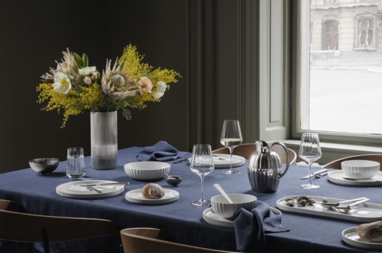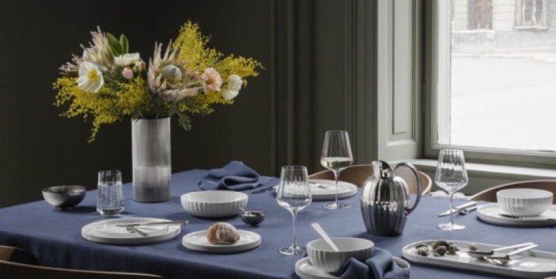 Georg Jensen udvider sine Sky og Bernadotte kollektioner af borddækningsartikler til foråret/sommeren 2021. Der tilføjes komplette sæt af service, som omfatter tallerkener, serveringsfade og glas. Det markerer starten på et spændende nyt kapitel for Georg Jensen, hvor vi fortsætter med at udvide vores produktsortiment til hjemmet og tilbyde nye muligheder for komplette borddækninger fra vores voksende udvalg af såvel klassiske som moderne varianter.