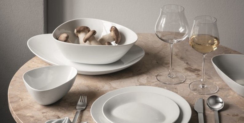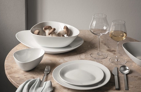 Bernadotte-kollektionen er inspireret af værkerne af en af Georg Jensens første samarbejdspartnere, den uforlignelige svenske designer Sigvard Bernadotte (1907-2002). Det er en moderne serie, som også vil byde på et udvidet sortiment til borddækning dette forår. Tallerkenernes design er baseret på en variation over de ikoniske riller, der var et centralt element i Bernadottes art deco-inspirerede design, og tallerkenerne har elegante riller rundt langs kanten. Skålene har en bredere tunget kant, og når delene bruges sammen, skaber de en flot kontrast, der føles frisk, munter og i høj grad moderne.