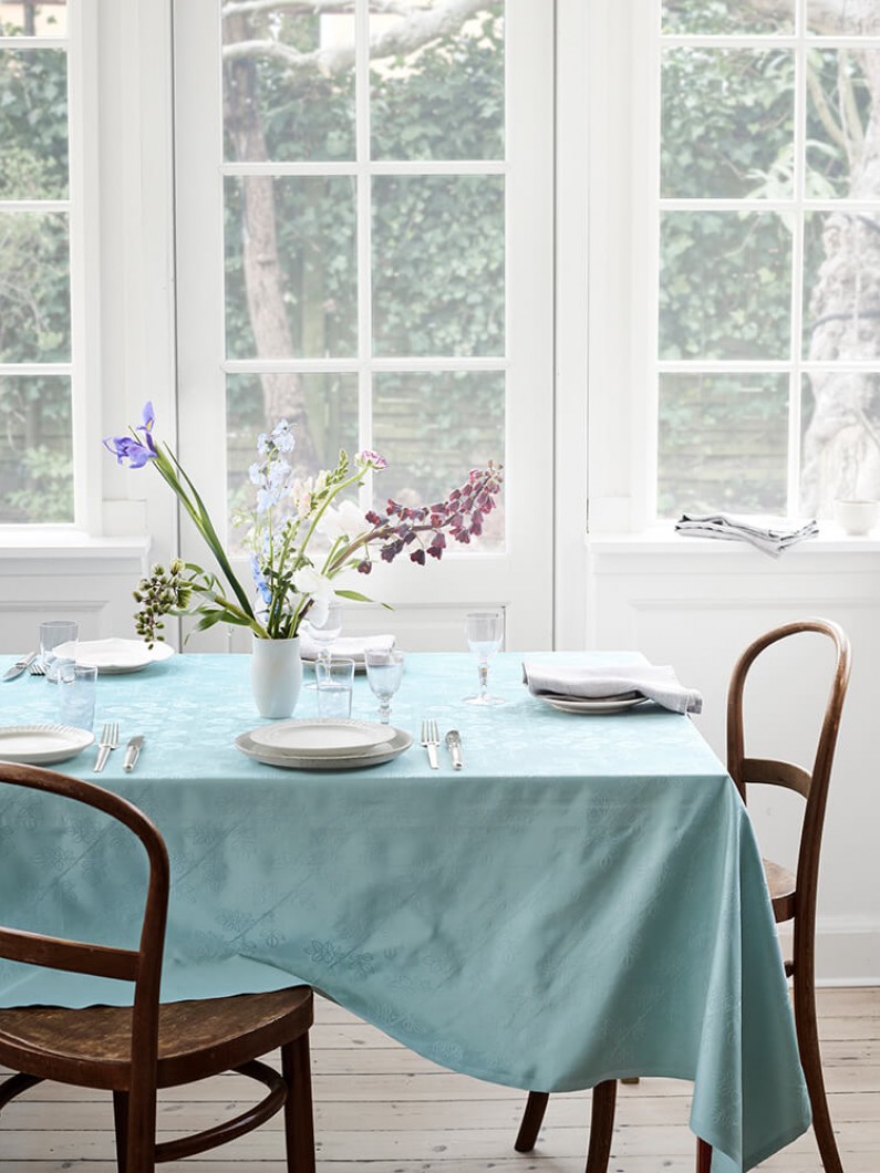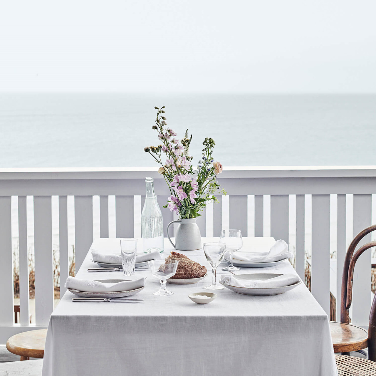 Foretrækker du en helt enkel dug, har firmaet dette forår lanceret den klassiske hørdug Plain i hvid. Med den på bordet skaber du også nemt en elegant opdækning.