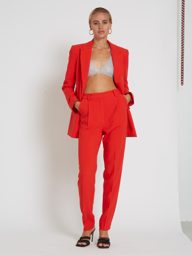 Danske Bruuns Bazaar har allerede taget hul på sommeren og hylder den kommende tid med fine skjorter, feminine kjoler og skarpe jakkesæt. Ikke mindst et jakkesæt i den smukkeste tomatrøde farve har jeg kastet mine øjne efter.
